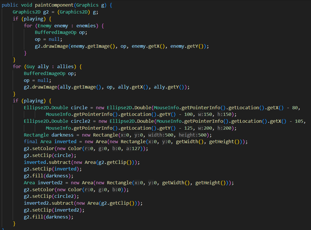 My most recent game project in java, this game has a group of statues on screen but some of the statues move when the player doesn't have the flashlight on them. The game is based around memorizing where the statues are and using that to find which ones are moving.