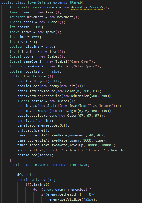 this was one of my first game projects I made from pure coding knowledge, it started as a simple game where you clicked enemies to deal damage to them and grew to have more and more features. For one of my first games made like this I am extremely proud of what I was able to make with just basic java knowledge.